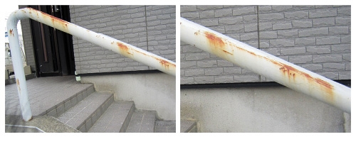 一般的には3~6年と言われていますが、特に雨・雪があたる所は早い段階でサビが出てきたり、ツヤが褪せてきたりします。